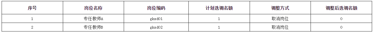 根据《四川旅游学院2025年公开选调工作人员公告》的相关规定及笔试缴费情况,因选调岗位有效报考人数与选调名额之比未达到公告规定的笔试开考比例,现取消以下2个岗位、共2个选调名额: